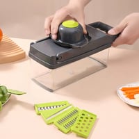 Sharp Blades, Rust-Proof: The blades of this vegetable chopper are made from 420-grade hardened stainless steel, making them more durable and rust-proof. They can cut through most types of fruits and vegetables, making this chopper a practical kitchen gadget.