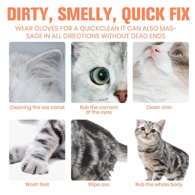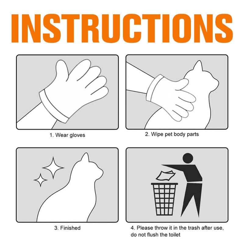 [No Rinse] - It can free your hands and bring you great convenience. When you need to bathe your naughty pet, gently wipe it with your hands for a few minutes, the pet wipes will produce some fine soap, and then you can help your pet clean its body. Finally, wipe off with a towel, no need to rinse pets with water.