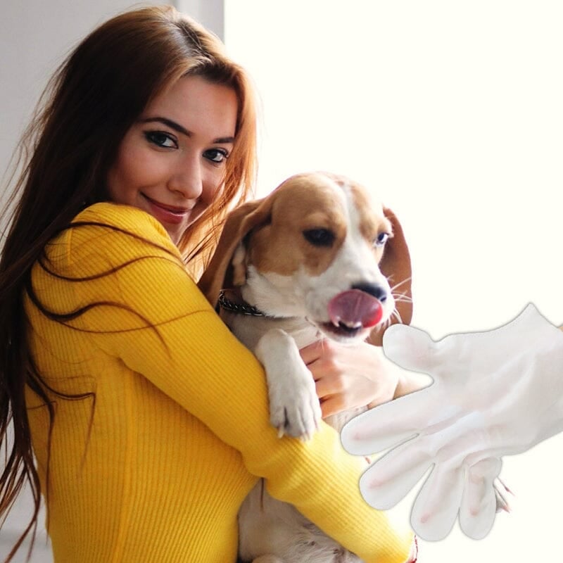 [FIVE-FINGER GLOVES] - Five-finger pet grooming mitt wipes design can help you scrub your pet more carefully, especially the key parts, such as, cheeks, ears, paws and private parts of your dog.
